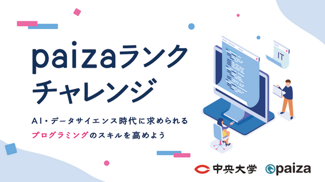 ITエンジニア向け国内最大の転職・就職・学習プラットフォーム「paiza(パイザ)」を運営するpaiza株式会社(東京都港区、代表取締役社長/CEO 片山良平)は、中央大学AI・データサイエンスセンターと共同で、中央大学および附属高校4校の学生・生徒約500人に新たに「paizaラーニング 学校フリーパス*」の提供を開始しました。これに合わせて、学生・生徒の学習動機の形成を目的に、受験することで自身のプログラミングスキルが測定できる「paizaスキルチェック」の取得ランクとチャレンジ回数の上位者を表彰する「paizaランクチャレンジ」も開催します。