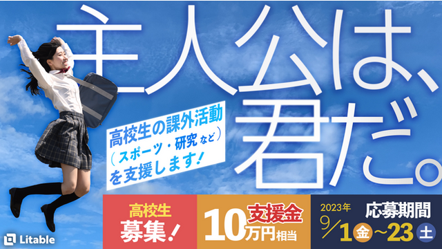 「誰もが主人公になれる社会をつくる」をミッションに活動する株式会社Litableと地域の協力企業が個人へのスポンサーとなり、山形県内で課外活動(スポーツ、武道、探究・研究、ボランティアなど)を頑張る高校生を支援金や物資提供、メンタルサポートを含め1年間支援するものです。