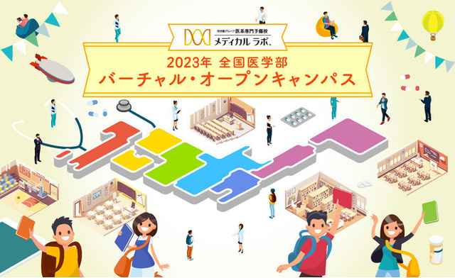 医系専門予備校として合格者数No.1(※「株式会社東京商工リサーチ」調べ/2023年度入試 医学部医学科合格者1,183名 2023年5月6日現在)、北海道~鹿児島まで全国27校を展開する医系専門予備校メディカルラボ(河合塾グループ)は、受験生・保護者への情報提供の場として、この度、全国医学部の最新入試情報をいつでもどこでもチェックできる「2023年 全国医学部 バーチャル・オープンキャンパス」を開催いたします。メディカルラボ独自取材のインタビュー動画や大学案内動画、キャンパスツアーや入試説明資料等をご覧いただくことで、全国医学部のオープンキャンパスを一度に体験いただけます。