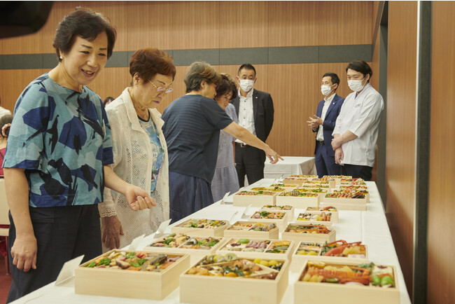 7月末に都内で「ハルメクのおせち2024」の完成披露試食会を実施いたしました。当日は、約30人の読者をお招きし、完成したおせちの試食をしていただきました。また、料理研究家の横山タカ子氏をゲストにお招きし、お正月の楽しみ方やハルメクのおせち2024を使ったワンプレートおせちを作るデモンストレーションも行いました。