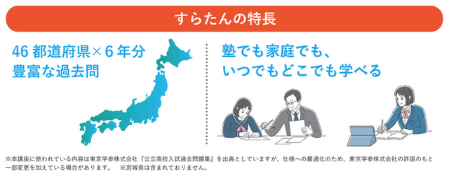 導入実績2000超を誇るeラーニング専門ソリューション企業、株式会社デジタル・ナレッジ(本社:東京都台東区、代表取締役社長:はが弘明)は、学習塾でのご利用に最適なデジタル教材「すらたん数学」を正式リリースいたしました。46都道府県の過去問6年分豊富な過去問を収録。数学力の大幅な向上を目指すことができます。今回のリリースを記念して「すらたん数学」にお申込みいただいた方には、数学のコンテンツ料を初月無償*でご提供いたします。