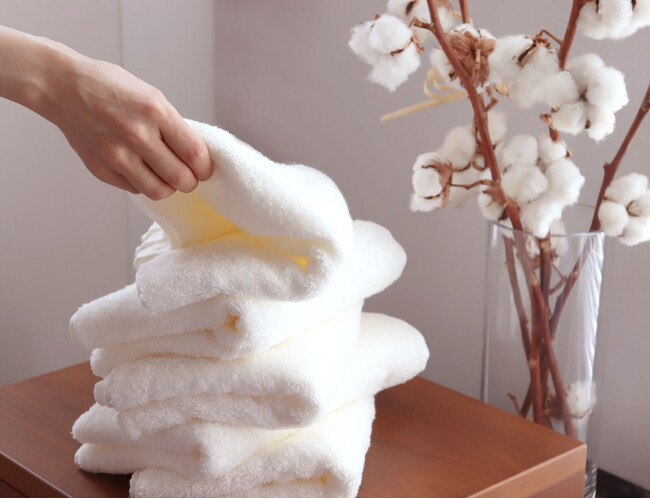 繊維の宝石と呼ばれる『海島綿』を使用し、浅野撚糸(株)が開発した吸水性、速乾性、耐久性に優れた撚糸『スーパーZERO(R)』加工で織り上げた、極上にやわらかいタオルが誕生しました。日常使いに最適な3サイズをご用意しました。体全体を包み込んでくれるバスタオル、ハンガーで干すことができる洗濯に便利なエニータイムサイズ、手軽に実感していただけるタオルハンカチの3サイズです。1枚ごとに海島綿使用の証であるシリアルナンバーの入ったタグつきです。