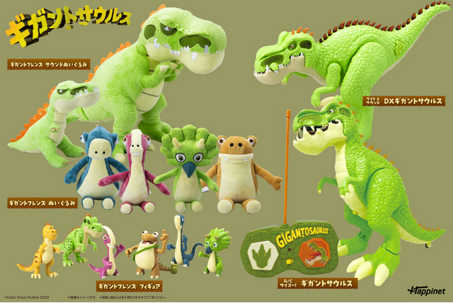 メインキャラクターであるギガントサウルス、ロッキー、ビル、マズ、タイニーの人形やぬいぐるみをはじめ、現在放映中のアニメーションに登場しているTレックスも商品化。
