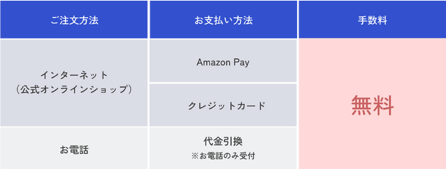 3種類のお支払い方法をご用意しております。ご注文手続きの際にお支払方法を選択してください。