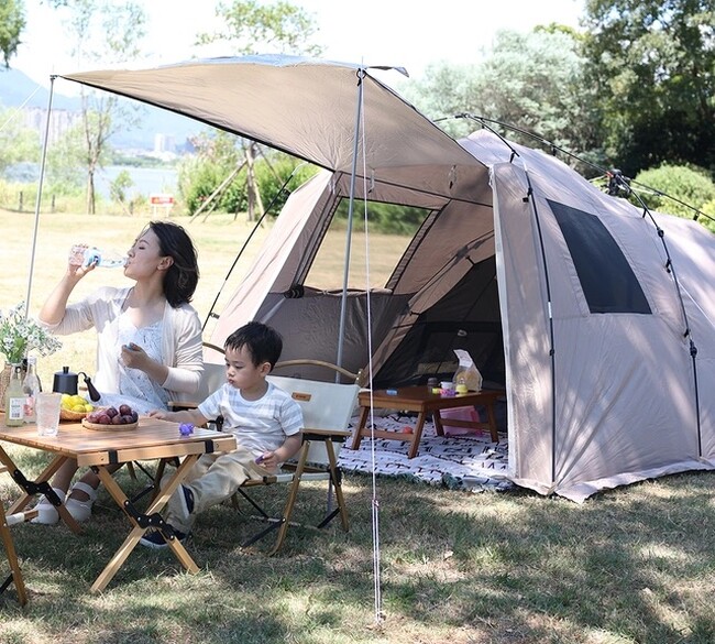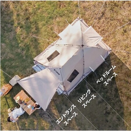 全自動開閉システムで簡単設置でき、エントランススペース&リビングスペース&ベッドルームスペースの3セクション構造となっており、特にベッドルームスペースは非常に広く、遊び疲れたお子様も快適にお休みできる空間になっています。
