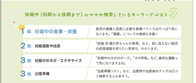 【妊娠中(初期から後期まで)のママが検索しているキーワードトップ3!】
