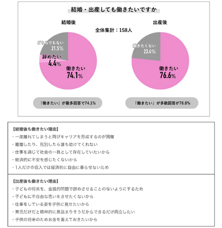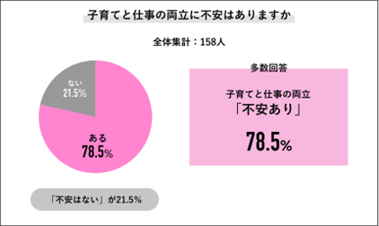 出産後の仕事復帰などが気になるママも少なくありませんね。産後に働きたいというママは70%を超えていますし、「産後の仕事と育児の両立への不安」も80%近くという結果も!
