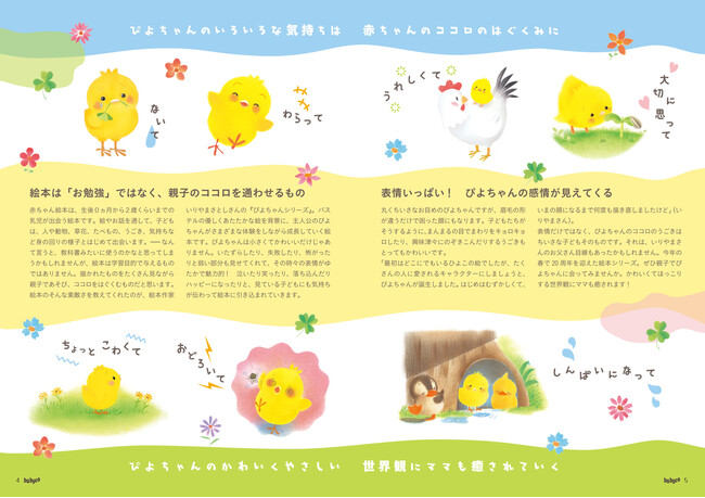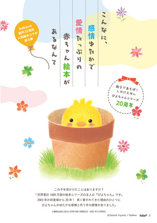 表紙は、今春で20周年を迎えた世界累計1000万部(※2)の『絵本ぴよちゃんシリーズ』とのコラボ。大好評の『0さい・1さい・2さいのはじめてのワーク』は、ぴよちゃんと遊ぶ楽しいカードを無料でお届けします!