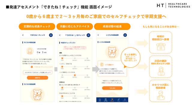 ソフトバンク株式会社の子会社であるヘルスケアテクノロジーズ株式会社(本社:東京都港区、代表取締役社長 兼 CEO:大石 怜史、以下「ヘルスケアテクノロジーズ」)は、2022年5月より提供しているデジタルこども手帳「てくてく」に新機能として発達アセスメント「できたね!チェック」を追加いたしました。