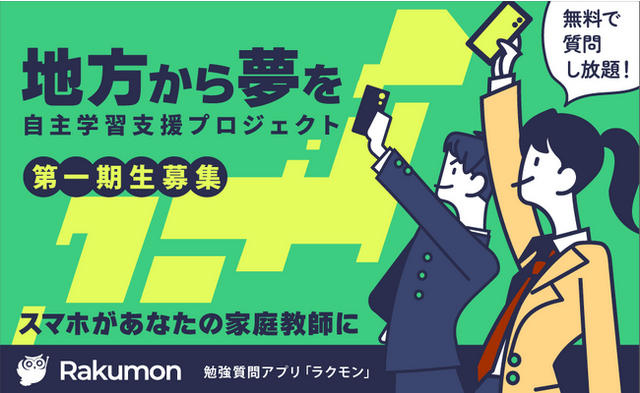 EdTechカンパニーのラクモン株式会社(本社:神奈川県横浜市、代表取締役社長:角田聡志)が「地方から夢を!無料で質問し放題!学習支援プロジェクト」の実施を発表し、2023年9月4日からユーザー募集を開始しました。親会社である六元素情報システム株式会社(所在地:神奈川県横浜市、代表取締役社長:余平、以下弊社)が資金を全額援助します。