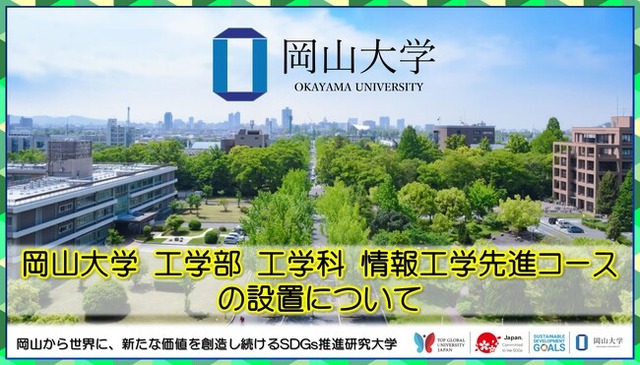 国立大学法人岡山大学(本部:岡山市北区、学長:那須保友)の工学部工学科では、2024年度から入学定員を増員し、新たに「情報工学先進コース」の設置を計画しておりましたが、この度、文部科学省に設置が認可されました。