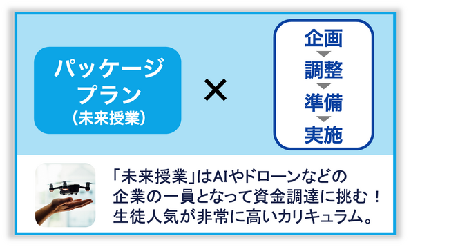 『未来を身近に』というテーマのもと、ドローンやメタバース、自動運転など、近未来の産業を創る企業が参画する。生徒は参画企業の中から興味がある企業に入社し、”企業の一員”として資金調達ピッチに挑む。