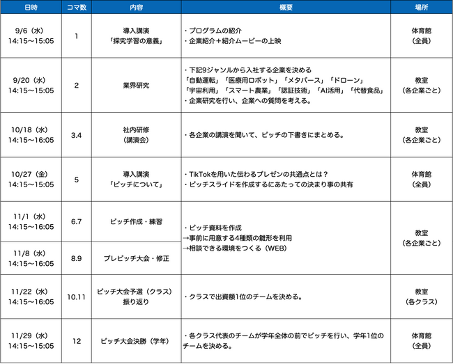 実施:弊社ファシリテーターにて12コマすべて授業を実施。
