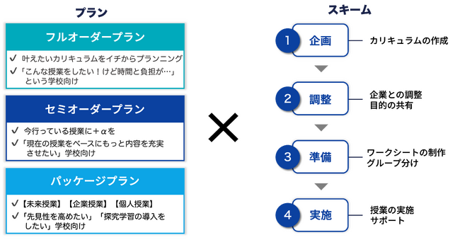 学校の課題やニーズに合わせて3つのプランと4つのスキームから選ぶことができる。