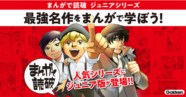 「まんがで読破 ジュニア」シリーズは、誰もが知っている名著・名作を、小学生でもわかりやすく、まんがで学べるよう、Gakkenが新たに発売したシリーズです。ジュニアシリーズは、文庫版の「まんがで読破」よりもひと回り大きなサイズで漫画部分にふりがながついています。また、より作品への理解が深まる時代背景や作者についての解説ページもあり、小学生から難しい作品にチャレンジできます。