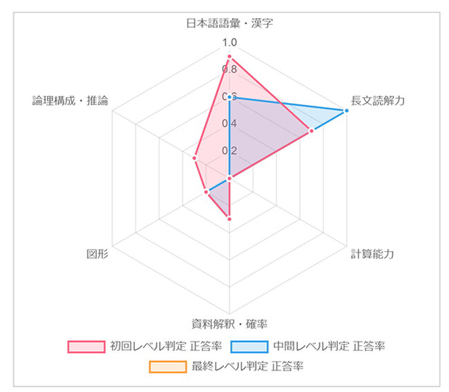 いまの自分のレベルや問題ごとの得意不得意が分かるので、今後の対策が立てやすくなります。