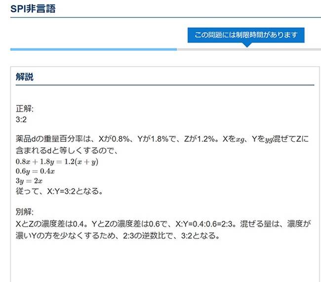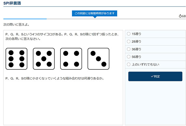 「就活対策Webテスト診断」には1問1問に制限時間があります。本番と同じ環境下でのシミュレーションができます。