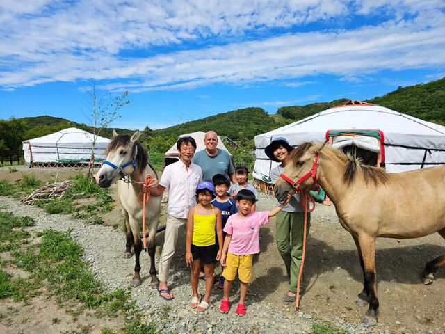 北海道浦河町は日高山脈の麓にあり、海と森がある町です。2023年6月12日、子どもと大人が対等な関係で子どもが一人の人間として尊重される世界を実現するために、オルタナティブスクール「フレンド森のがっこう」を開校。ゲルのキャンパス、2頭の馬、約8haもの広大な森は「自然は非認知スキルを育む」という研究結果が示す通り、子ども達の脳や身体、感性に刺激を与える最高の環境です。そこで子どもたちは日々どう過ごすかを自分たちで決めて行動します。時には世界中の人々と出会い、時には森を探検し、時には文化を楽しみながら学びます。