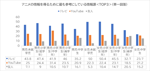 調査の結果、キッズの推しアニメ・漫画事情や、アニメの情報源では「YouTube」が台頭し「テレビ」に次ぐメディアに成長していることなどが分かりました。