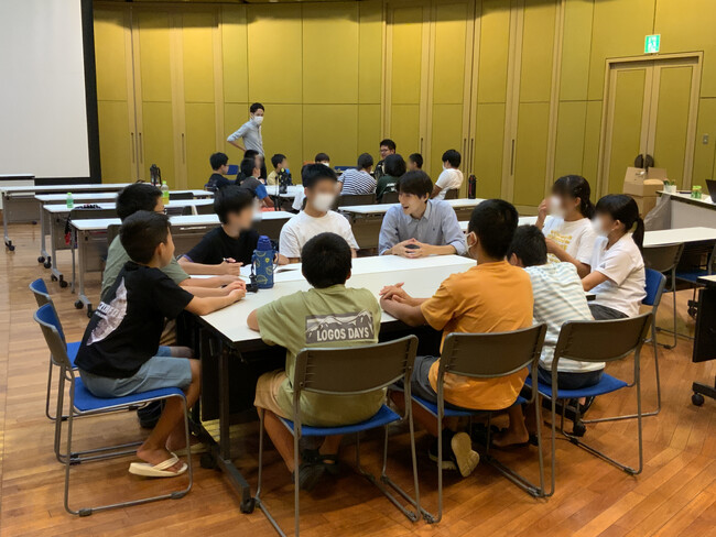 当日は残暑も厳しい中、羽咋市内の小中学生41名が参加しました。東大生の指導のもと、中学生は成績を上げる勉強法を学び、小学生は思考力問題やジェットコースター作りなどに取り組みました。また、東大生と将来を考える座談会も開催され、子どもたちは東大生に「好きなYouTubeは何ですか?」「年収はいくらですか?」など思い思いの質問をしていました。