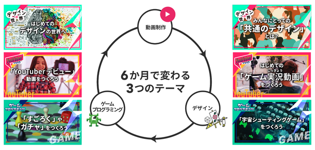体験可能なテーマ:マインクラフト、デザイン、動画制作、ゲームプログラミング