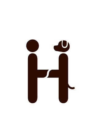 【H】というロゴは犬と人間が向き合い、手を取り合っている姿を表しており、犬を単なるペットではなく、尊重しあえるパートナーとして考えるハキハナ社の願いがこもった新ロゴをお届けします。