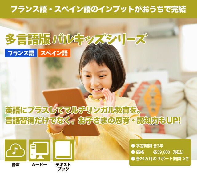 株式会社児童英語研究所では『多言語版パルキッズ』の新発売にともない、9月28日までの期間限定で先行予約価格での販売を行なっている。詳しくは児童英語研究所公式ウェブサイト内『多言語版パルキッズ』教材ページにて。また本ページではかけ流し音声や動画のサンプルも公開している。