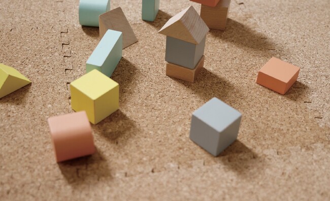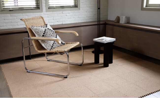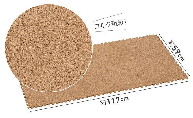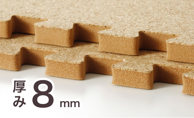 コルクが粗めの「やわらかコルクマット 8枚組」は、お部屋に敷いたときにコルクの風合いをより強く出したい方におすすめです。