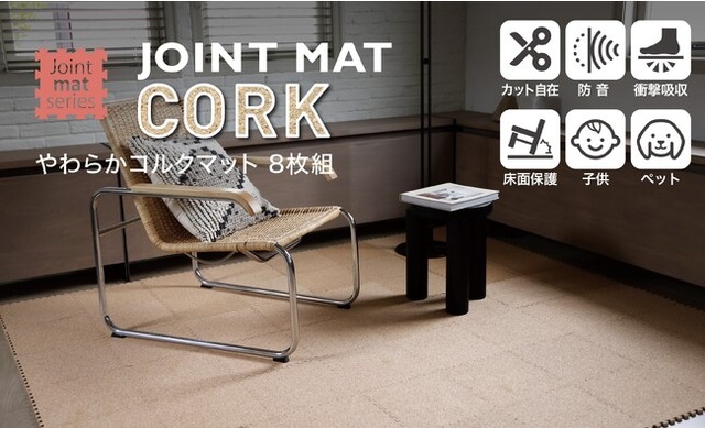 表面はコルクなのでジョイント部のつなぎ目が目立ちにくく、インテリアにこだわりがある方にもおすすめです。