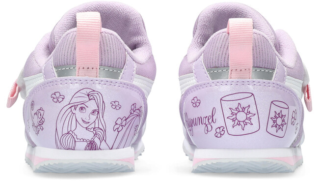 かかと部には左右で異なるアートを施し、「ベル」または「ラプンツェル」をプリントしています。