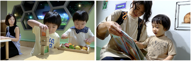 館内のお手洗いにおむつ台とおむつ専用のゴミ箱を完備しているため、乳幼児のお子様とご一緒でも安心してご来館いただけます。館内には、授乳・おむつ替え・離乳食の食事にご利用いただける完全個室のベビーケアルーム「mamaro」を設置しております。