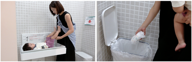 3.乳幼児と一緒でも安心!おむつ台と専用ゴミ箱完備!
