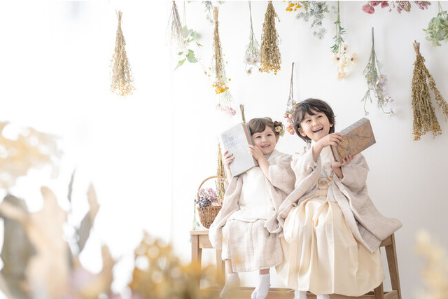 完全プライベートの空間を2時間使用でき、リラックスした雰囲気の中でお子様の自然な姿を撮影できます。ヘアメイクはもちろん、インテリアや一部衣装もコフレオリジナル。毎年撮影に訪れる根強いファンも。東名阪を中心に全27店舗展開。