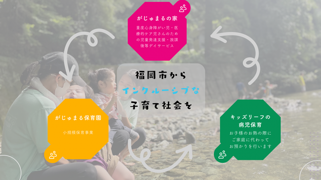 当社では、”障がいの有無に関係なく、ともに遊び・成長する”をモットーに重度心身障がい児・医療的ケア児さんの受けいれをおこなう児童発達支援事業所・放課後等デイサービス「がじゅまるの家」と、併設して「がじゅまる保育園」の運営を行っております。障がいの有無に関係なく、お子様とそのご家族がその人らしい生き方が実現できるようサポートすることをミッションとして掲げております。