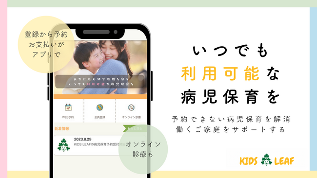 本年4月から福岡市では、急な発熱や体調不良で、保育園にいけない子供をご家庭の代わりにお預かりを行う「病児保育」の無償化がスタートし、利用希望者が3倍まで急増。現在、「予約ができない」との声が多数上がっています。病児保育を利用するときはご家庭の緊急時。”いざ”というときに必ず利用ができる病児保育を提供することで、いま起こっているこの問題を解消したい。ご家庭の育児と仕事の両立をサポートしたいという思いから「訪問型病児保育キッズリーフ」を10月1日よりスタートします。