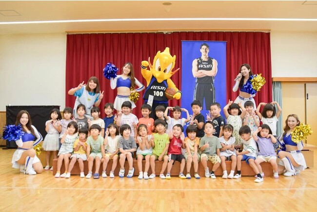 2023年9月5日(火)、シーホースくんとSuper GirlsのASAMI、CHISAKI、MIDORI、SAYAKAがみのわ保育園(安城市)を訪問し、園児の皆さんと一緒にクイズやダンスを楽しみました。