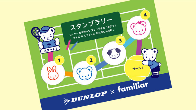 第2弾は、アイテムだけでなく、子どもたちが実際に体を動かしてテニスに親しんでもらえるようなイベントを企画。世界ランキング47位の記録を残す、ダンロップテニスアドバイザリースタッフの中村藍子プロを講師にお招きし、3歳から小学3年生までを対象に初心者向けのテニスレッスンを10月9日(月・祝)のスポーツの日に合わせて、ダンロップスポーツクラブ江坂店で開催いたします。さらに、コラボデザインを使用したLINEスタンプの販売も実施。ファミリア神戸本店では、テニスにまつわるクイズや体を動かすミニゲームをお楽しみいただけるスタンプラリーを開催します。この機会にぜひ、両ブランドのこだわりがつまったコラボ企画をお楽しみください。