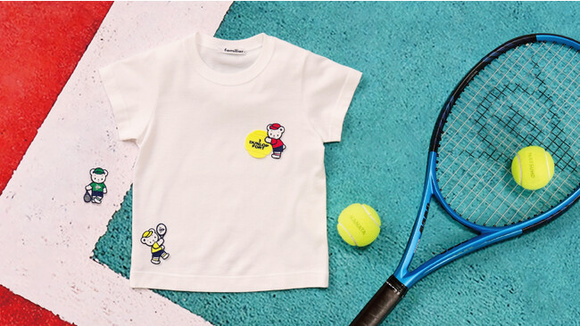 本コラボレーションは、2023年6月、「スポーツを通して子どもたちの成長をサポートしたい」という両社共通の想いのもと実現。ファミリアのオリジナルキャラクター「ファミちゃん」がテニスを楽しんでいる様子を5種類のアートで表現し、テニスをより身近に感じていただけるようなアイテムを企画いたしました。