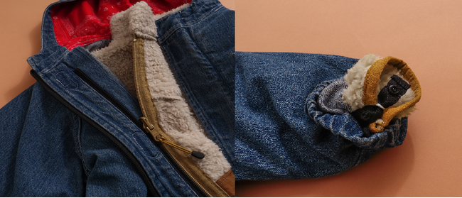 アウター同士をファスナーで連結することにより、真冬でも着られる重アウターとして使用することができ、また連結せず、単体で着ることにより秋から春まで長期間ご使用いただくこともできます。