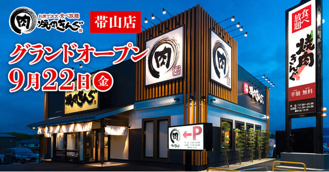 株式会社物語コーポレーション(本社:愛知県豊橋市/代表取締役社長:加藤 央之)は、2023年9月22日(金)に全国310店舗目となる『焼肉きんぐ 帯山店』(熊本県熊本市)をグランドオープンいたします。