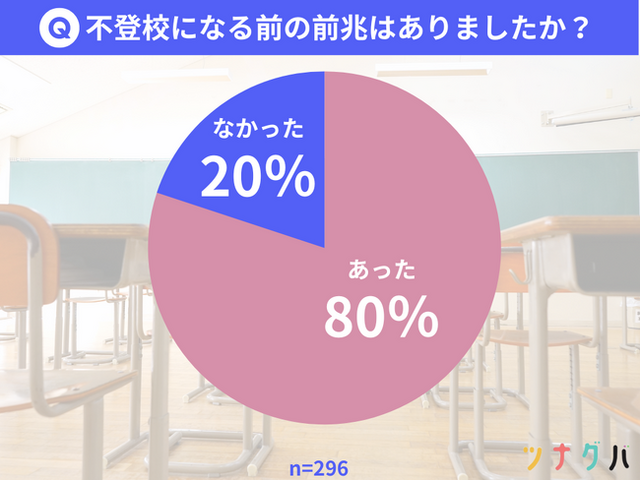 不登校経験を持つ296名のうち、80%が「学校に行けなくなる前の前兆があった」と回答しました。