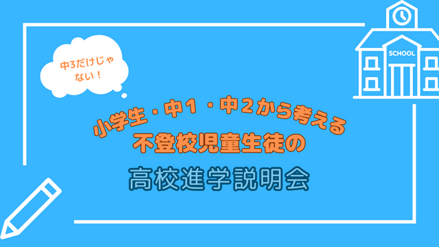 ◆ 名称:中3だけじゃない! 小学生・中1・中2から考える不登校児童生徒の高校進学説明会