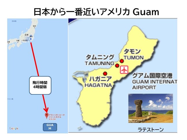 グァム島は日本から4時間足らずで到着することができる日本に最も近いアメリカです。アクセスが容易で