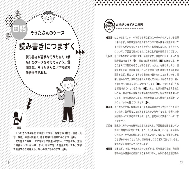 読み書き、計算などが困難な10名のお子さんのつまずきの原因を、学校の先生からの相談にしたがって対話形式で読み解き、支援方法を紹介していきます。ぜひ、目の前のお子さんにも実際に試してみてください。シートは専用サイトからダウンロードできます。
