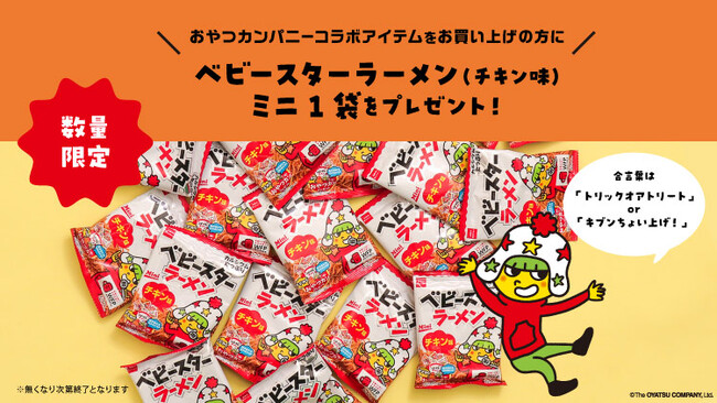 内容:コラボ商品お買い上げでベビースターラーメン(チキン味)ミニ1袋をプレゼント