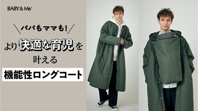 青山商事株式会社のグループ企業である株式会社アスコン BABY&Me事業部(本社:広島県福山市)が展開するヒップシートキャリアブランド「BABY&Me (ベビーアンドミー)」は、男性の育休取得、育児参加を応援する「抱っこひもを装着したまま羽織れるダッカー付きユニセックスロングコート」を、クラウドファンディングサービスの「Makuake」にて9月18日(月)より先行公開いたしました。