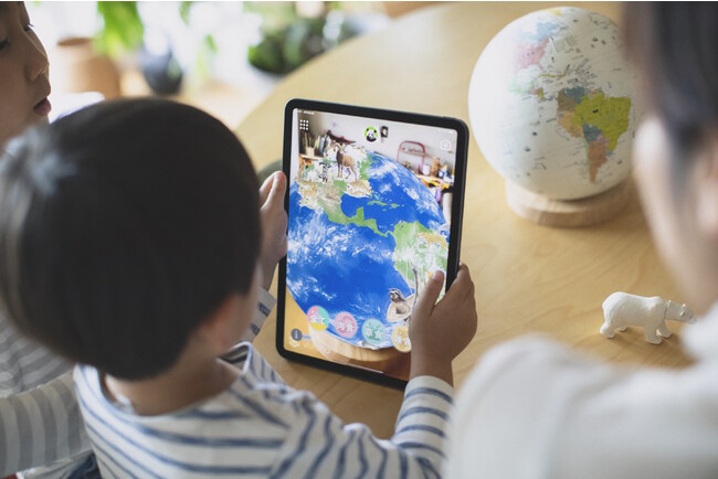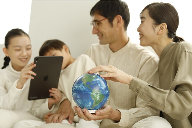「ほぼ日のアースボール」はAR技術を使った新しい地球儀です。アプリを入れてスマートフォンやタブレットをかざすと、世界のいろんな情報がとびだします。地球上でリアルタイムに変化する雲・雨・気温の様子から、世界の国々、恐竜や動物の情報まで、子どもの好奇心を刺激するコンテンツは25種類以上。びっくりも、発見も、学びも、遊びも、全部がつまった大人とこどもの地球儀です。