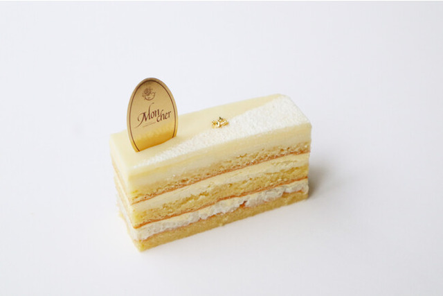 白を基調としたし大人の雰囲気をイメージしたスタイリッシュなデザイン。口に含んだ時に広がる酒粕の香り。普段お酒の呑まない方のお口にも合うように、甘さと酒の風味を調整した至極の一品。中に入れたお米のリゾットもケーキのアクセントになる食感を生み出しています。