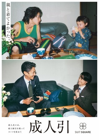 青山商事株式会社(本社:広島県福山市/代表取締役社長:青山 理(おさむ))は、ブランドアンバサダーである窪塚洋介(くぼづかようすけ) さん、窪塚愛流(くぼづかあいる)さん親子を起用した成人式応援キャンペーン「成人引」の新たなビジュアルを9月22日(金)より公開し、「スーツスクエア」「ザ・スーツカンパニー」の店頭やWEBサイトなどの各種販促ツールに展開します。