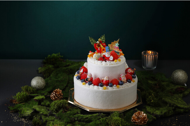 赤と緑のクリスマスカラーや、愛らしいサンタクロースたちなど、クリスマスを盛り上げる華やかなデコレーションとダイナミックなサイズがパーティーにもふさわしいクリスマスケーキです。2種類のケーキを数量限定でご用意いたします。